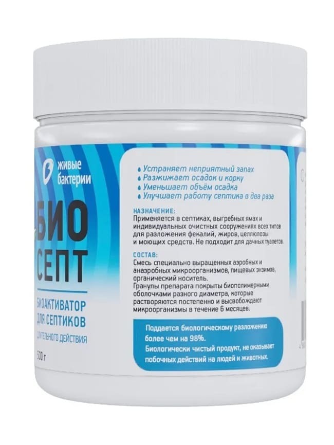 Биоактиватор Биосепт Живые бактерии 500 гр, для септиков, выгребных ям, туалетов, бактерии для септика