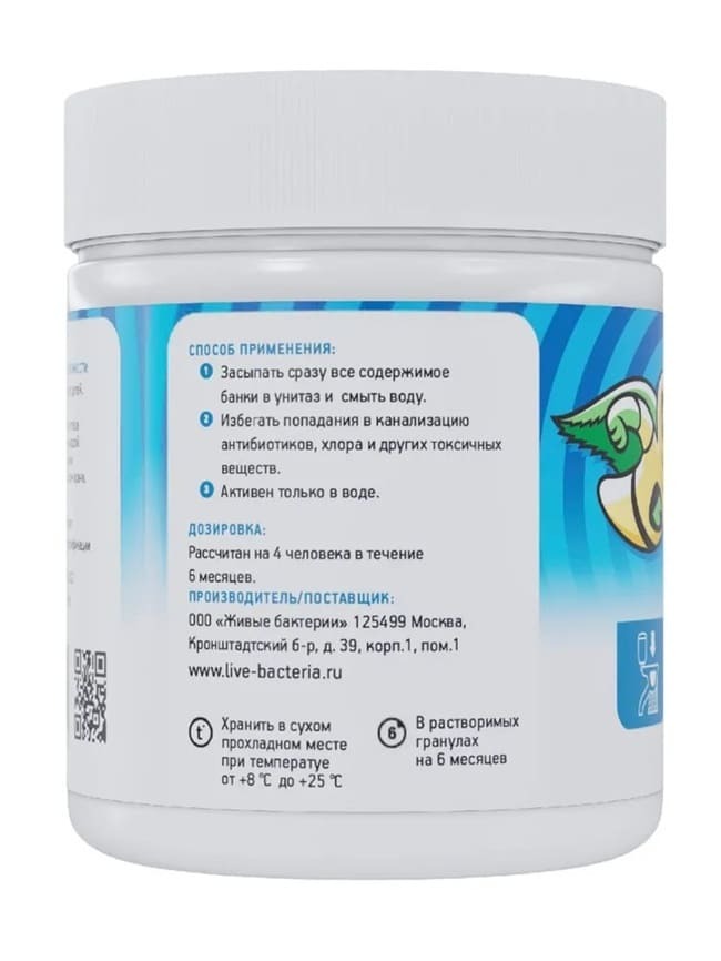 Бактериальный БИО препарат на основе энзимов и специально выращенных микроорганизмов. Гранулы препарата покрыты биополимерными оболочками разного диаметра, которые растворяются постепенно и высвобождают микроорганизмы в течении 6 месяцев.