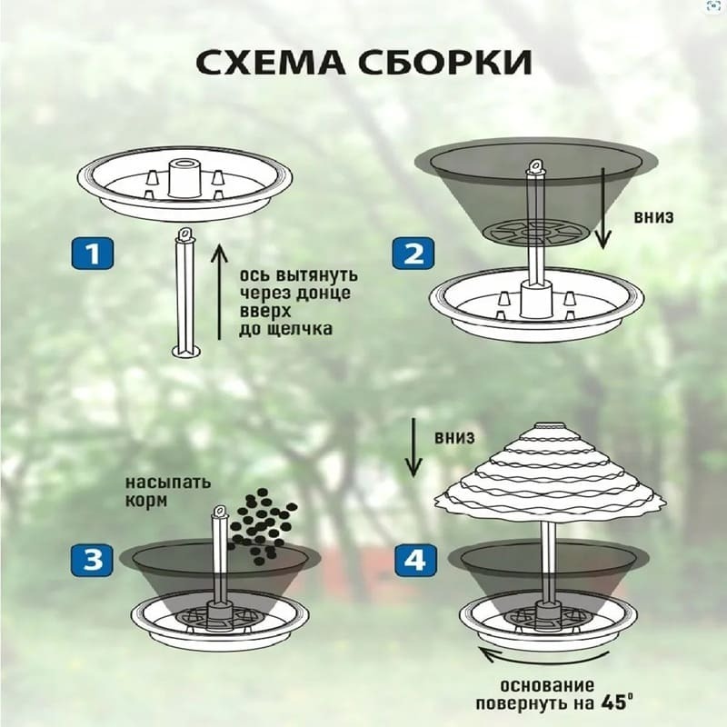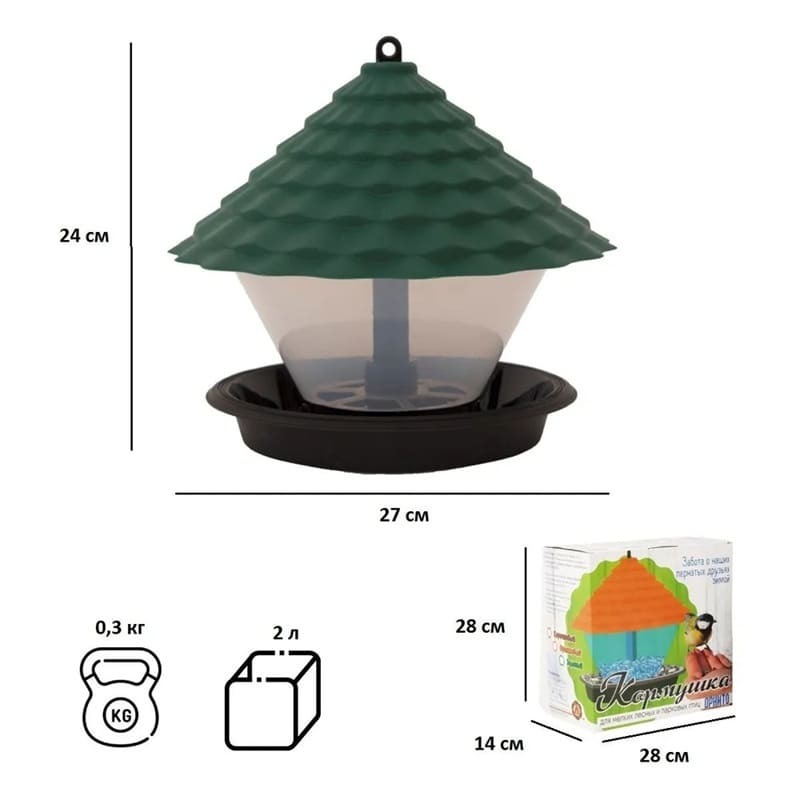 Кормушка уличная для мелких лесных и парковых птиц. Благодаря устойчивости к воздействию ненастной погоды уличную кормушку для птиц можно разместить на даче, в парке, во дворе и в любом другом месте обитания птиц. Изделие выполнено из прочного экологичного пластика и сохраняет корм сухим и чистым, при этом дозируя количество. Также вы можете выбрать удобный вариант установки, например: на шнуре, черенке или даже на земле. Кормление птиц доставляет не только радость детям и взрослым, но и приносит огромную пользу для живой природы.